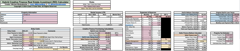 The Intentional Investor is proud to present the ULTIMATE Creative Finance Real Estate Investing Deal 👍 or No Deal 👎 Calculator.