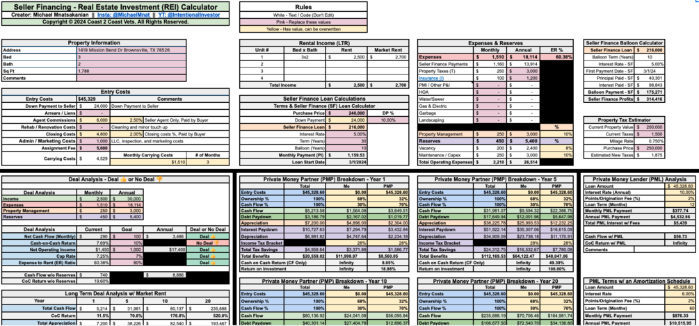 ULTIMATE Seller Finance Real Estate Investing Calculator
