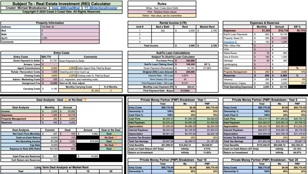 The Intentional Investor is proud to present the ULTIMATE Subject To Real Estate Investing Calculator!