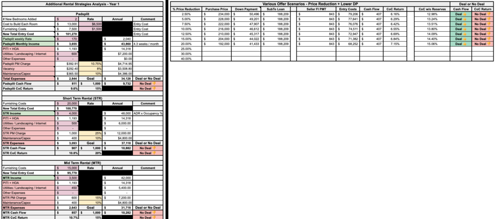 With this one calculator, you'll be able to determine if ANY long-term, short-term, medium-term, or rent-by-the-room (Padsplit) real estate investment is a Deal 👍 or No Deal 👎.